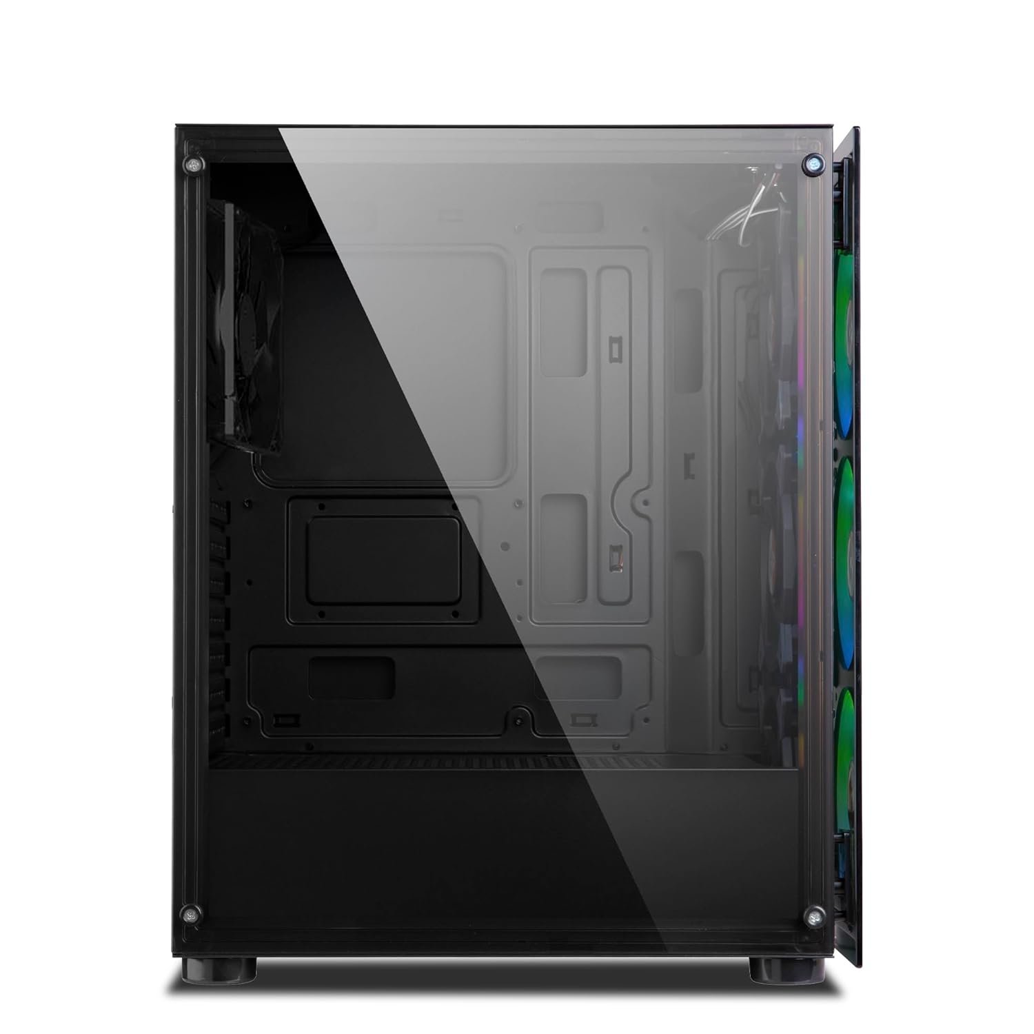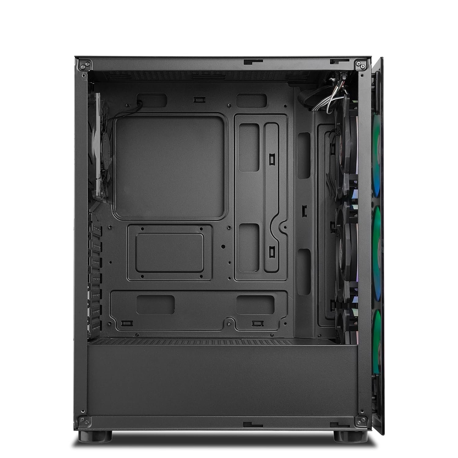 The ICE-311GT is equipped with a state-of-the-art cooling system that ensures your components stay at optimal temperatures, even during marathon gaming sessions. With four strategically positioned pre-installed fans, the cabinet guarantees exceptional airflow, effectively dissipating heat and preventing the risk of thermal throttling. The addition of side vents further enhances air intake, ensuring a steady flow of cool air to all critical components. For those who demand even more, the front panel is compatible with a 240mm liquid cooler, providing an advanced cooling option that keeps your system running smoothly under heavy loads.