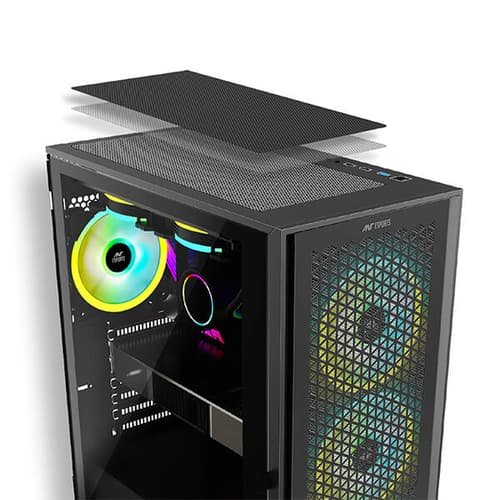 The Ant Esports ICE-4000 is a modern mid tower chassis designed for PC builders who want balanced aesthetics, optimal airflow, and versatile hardware compatibility. With its clean black finish and integrated RGB lighting on the front panel, the case delivers a bold look without compromising function.