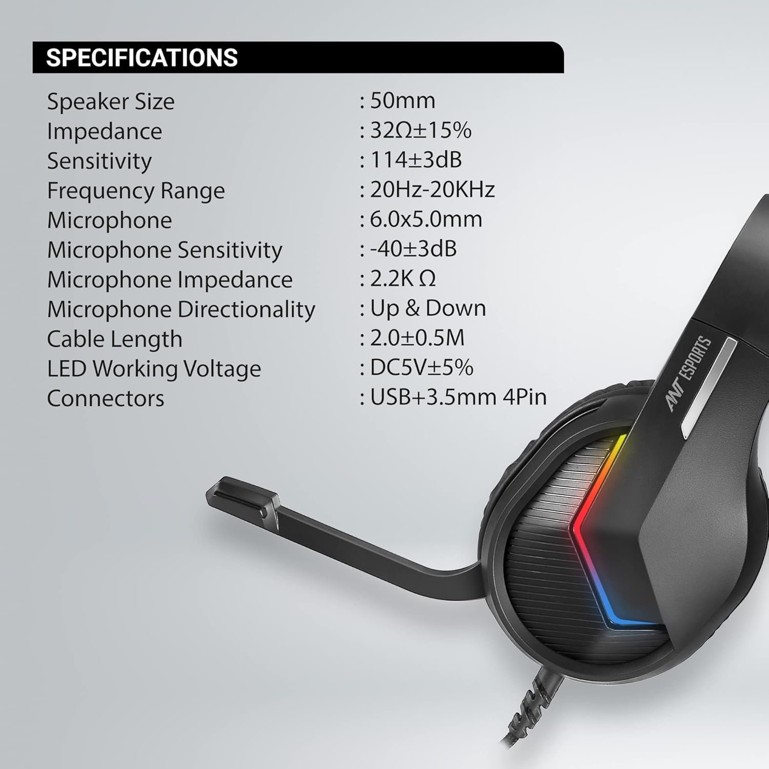 | Model | Ant Esports Black Pro Auto RGB H1100 Gaming Headset |