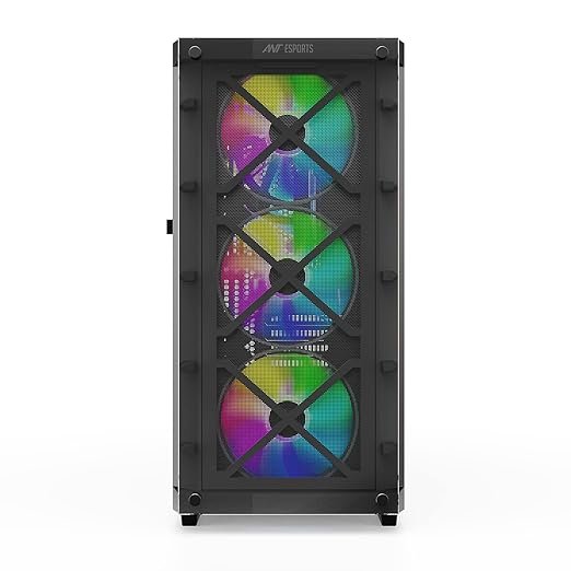 The Ant Esports E-ATX ICE-5000 RGB Case is a premium full-tower gaming cabinet crafted for enthusiasts who demand exceptional cooling, spacious interiors, and striking aesthetics. Engineered with a robust steel frame and a front mesh panel, it provides superior airflow to keep even the most powerful components running cool. Equipped with multiple pre-installed RGB fans, the case delivers vivid illumination that enhances the overall gaming atmosphere. Its sleek black finish and expansive tempered glass side panel make it a centerpiece for any modern gaming setup.