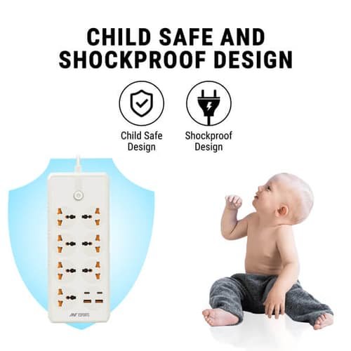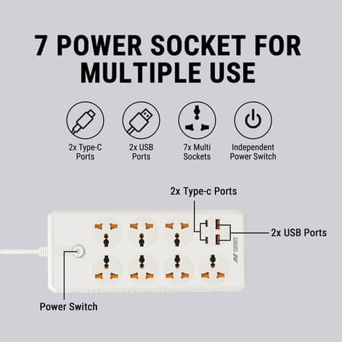 The power strip includes several AC sockets, allowing you to connect computers, monitors, printers, or other electronics at the same time. This reduces the need for multiple wall sockets and helps maintain a tidy workspace.