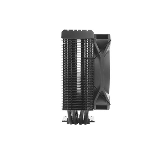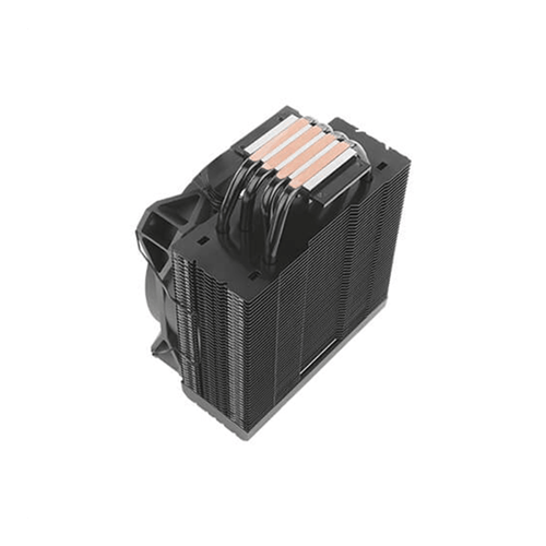 The top cover of the FrigusAir 400 RGB is adorned with an ARGB (Addressable RGB) strip design, adding a visually appealing element to the overall appearance of the cooling solution. This design choice not only serves a decorative purpose but also contributes to the aesthetics of the entire system. All-Black Theme: