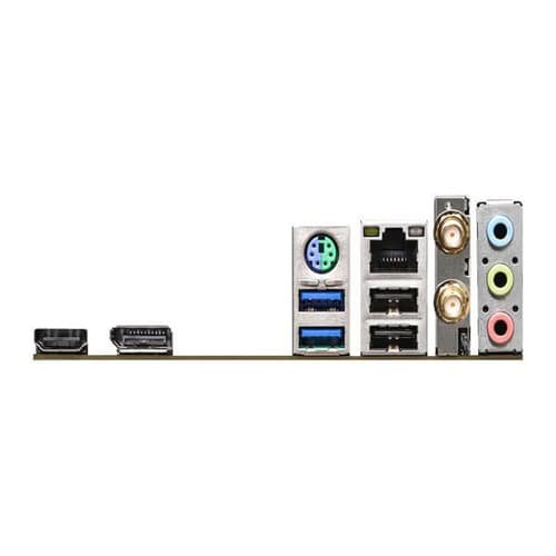 | Rear Panel I/O | - 2 x Antenna Ports - 1 x PS/2 Mouse/Keyboard Port - 1 x HDMI Port - 1 x DisplayPort 1.4 - 2 x USB 3.2 Gen1 Ports (Supports ESD Protection) - 2 x USB 2.0 Ports (Supports ESD Protection) - 1 x RJ-45 LAN Port with LED (ACT/LINK LED and SPEED LED) - HD Audio Jacks: Line in / Front Speaker / Microphone |