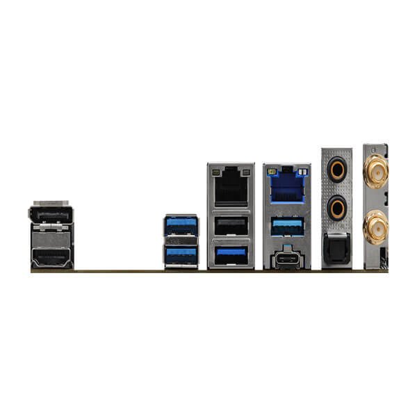 | Rear Panel I/O | - 2 x Antenna Ports - 1 x HDMI Port - 1 x DisplayPort 1.4 - 1 x Optical SPDIF Out Port - 4 x USB 3.2 Gen2 Type-A Ports (10 Gb/s) - 1 x USB 3.2 Gen2x2 Type-C Port (20 Gb/s) - 1 x USB 2.0 Port - 2 x RJ-45 LAN Ports - 1 x Line Out Jack (Gold Audio Jack) - 1 x Microphone Input Jack (Gold Audio Jack) |