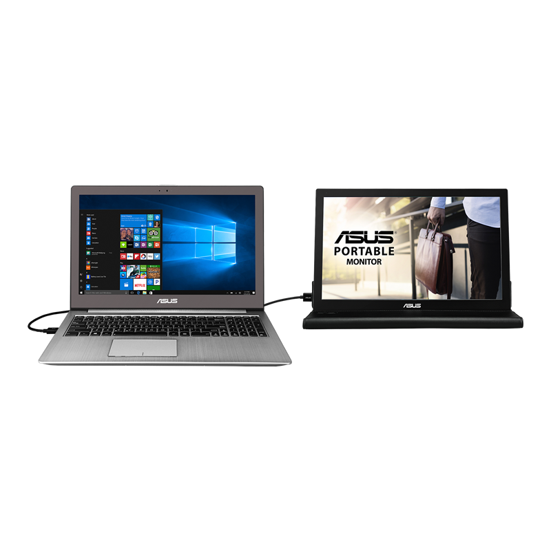 The ASUS MB168B Portable monitor offers a range of features designed to enhance portability, convenience, and productivity. Here's an explanation of its key features: