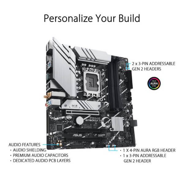 Overall, the ASUS Prime B760M-A WIFI motherboard combines robust power delivery, comprehensive cooling solutions, and intelligent tuning options. It provides PC DIY builders and users with a platform optimized for performance, customization, and future upgrades.