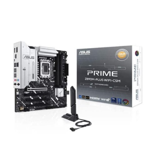 The ASUS Prime Z890M-Plus WIFI-CSM Micro-ATX Motherboard is designed to provide reliable performance, efficient multitasking, and robust connectivity for modern desktop systems. Tailored for professionals, small form-factor PC builders, and productivity-focused users, it offers a stable platform capable of handling demanding workloads, everyday computing, and professional applications. Its compact Micro-ATX form factor combines space-saving design with high-performance capabilities, making it ideal for versatile workstation setups.