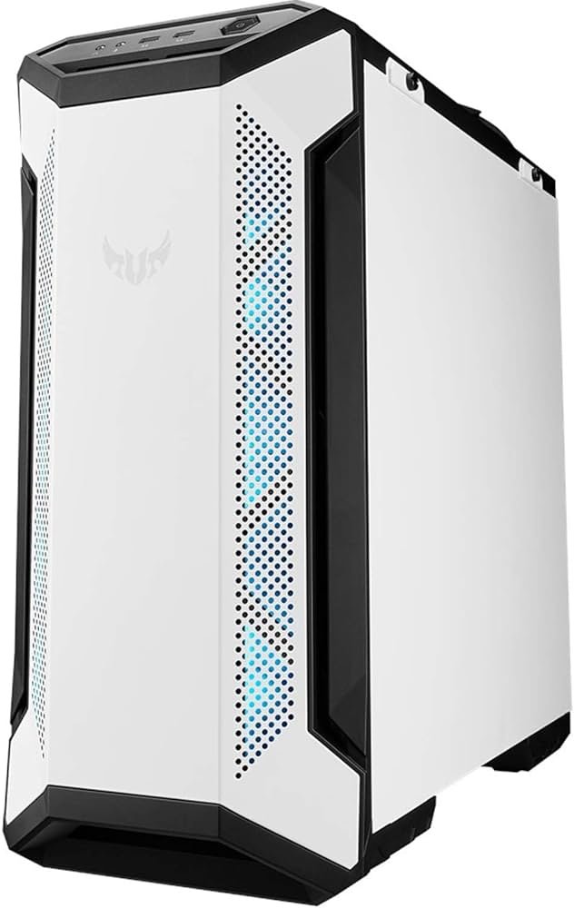 The front panel of the case includes various I/O ports for convenient connectivity, including USB ports for peripherals, headphone and microphone jacks for audio devices, and other USB 3.1 Gen1 ports for high-speed data transfer. Tempered Glass: