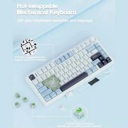 Built for flexibility, this keyboard supports tri-mode connectivity, allowing you to switch seamlessly between wired, Bluetooth, and 2.4GHz wireless modes. Whether you're gaming, working, or multitasking across devices, the Aula F75 ensures a smooth and responsive experience. Equipped with Reaper switches, it delivers precise keystrokes, satisfying feedback, and durability suited for long hours of use.