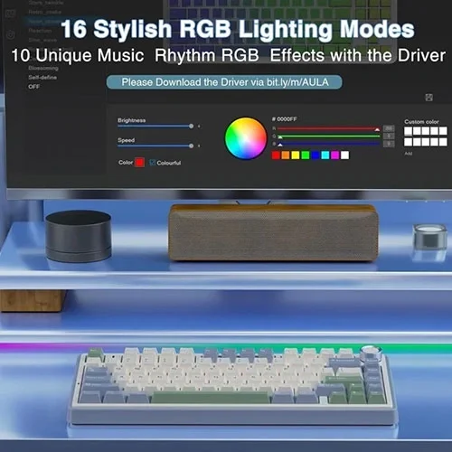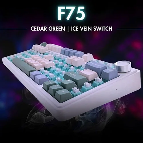 Engineered for versatility and comfort, the Aula F75 supports tri-mode connectivity—wired, Bluetooth, and 2.4GHz wireless—allowing seamless switching between multiple devices. Equipped with Ice Vein mechanical switches, the keyboard delivers a tactile and responsive typing experience, perfect for gaming or productivity tasks. Combined with vibrant RGB backlighting, ergonomic design, and durable construction, this keyboard ensures both performance and long-term reliability.