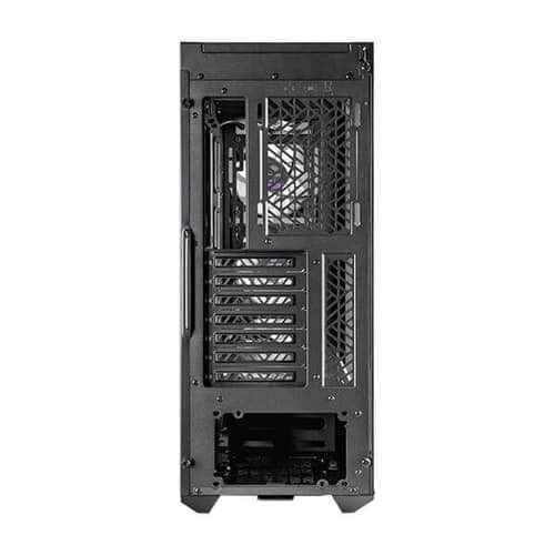 It likely includes features for cable management to keep the interior of the case dust-free.