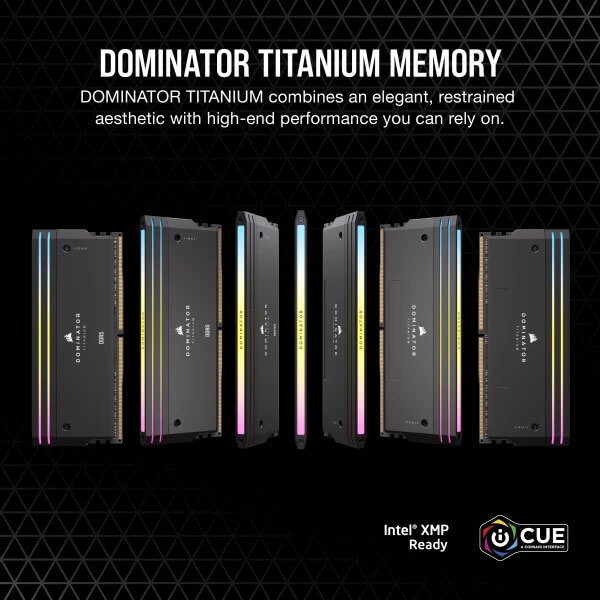 The Corsair Dominator Titanium RGB 32GB (16GBx2) 7200MHz CL34 DDR5 kit is a high-end memory solution designed for users who need fast, reliable performance, including gamers, PC enthusiasts, and creative professionals. Its ultra-fast 7200MHz speed combined with CL34 latency ensures smooth data transfer and quick system responsiveness, which helps improve frame rates in games and speeds up demanding tasks like video editing, rendering, and running multiple applications at once. Built on modern DDR5 technology, it provides better efficiency, increased bandwidth, and improved power handling compared to older memory standards.This memory kit also supports Intel XMP 3.0, allowing users to easily enable optimized performance settings with a single click instead of manually adjusting speeds and timings. The advanced design ensures stable operation under heavy workloads while maximizing system performance, making it a perfect choice for high-performance PCs and next-generation builds.