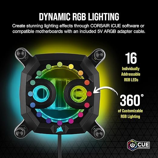 Integrated RGB lighting adds a refined visual element to the water block. The lighting can be adjusted and synchronized with compatible motherboard or controller software, allowing users to coordinate colors and effects with the rest of their system for a unified appearance.