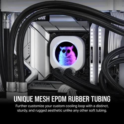 The Corsair Hydro X Series XT Softline 13mm Mesh Tubing in Black is a flexible, high-quality tubing solution designed for liquid cooling systems in PCs. Its soft and pliable design allows for easier routing and bending compared to rigid tubing, making it ideal for builds with complex layouts or limited space.