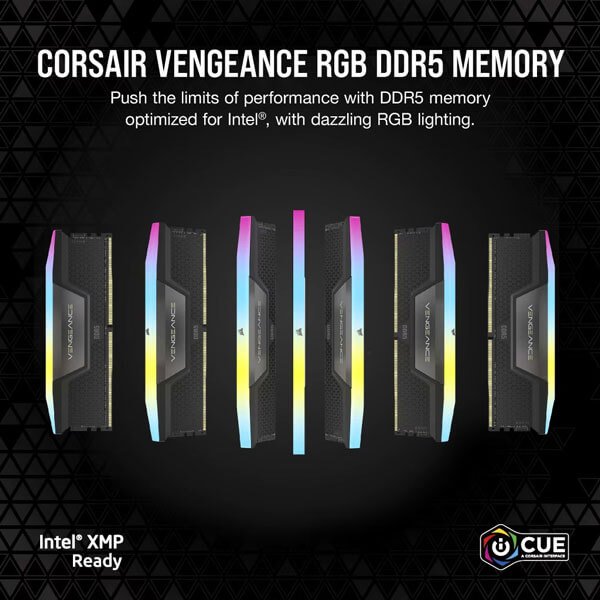 The Corsair Vengeance RGB 32GB (16GBx2) 7200MHz CL34 DDR5 RAM is a high-performance desktop memory kit designed for gamers, PC enthusiasts, and creative professionals who demand ultra-fast, reliable, and visually striking system memory. Built using the latest DDR5 technology, this dual-module kit delivers exceptional bandwidth, efficient power consumption, and stable performance under intensive workloads. It is ideal for modern gaming, multitasking, and professional applications, ensuring smooth and responsive system operation even during demanding tasks.