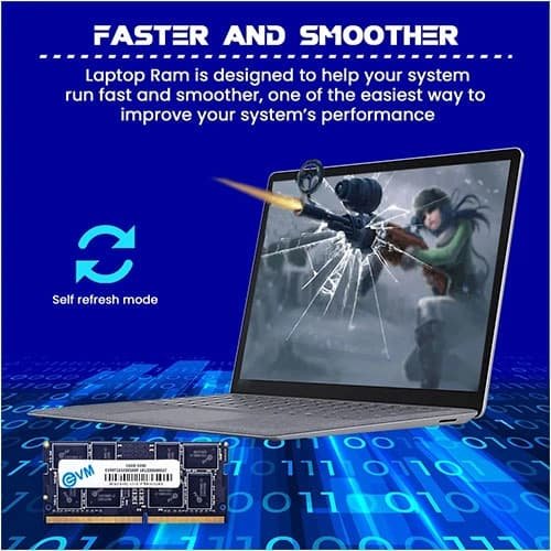 The EVM 16GB 3200MHz CL19 DDR4 Laptop RAM is a high-performance memory module designed to enhance laptop speed, multitasking capability, and system responsiveness. It allows laptops to handle demanding applications, productivity tasks, and multimedia usage efficiently, providing a smoother overall computing experience.