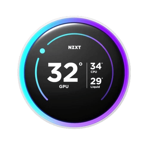 Embedded LCD Display: The pump unit of the Kraken 360 RGB White features an embedded 1.54” square LCD screen. This screen can display real-time system information or custom images, providing both functional and aesthetic benefits.