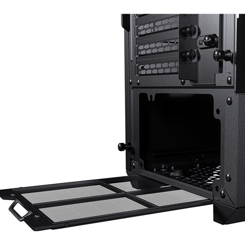 Dust Filters: The chassis features dust filters located at the front, top, and bottom to prevent dust buildup inside the case. These filters help maintain clean airflow and protect internal components from dust accumulation, ensuring optimal performance and longevity of the hardware.