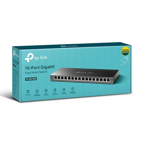 The TP-Link TL-SG116E Desktop Switch is a 16-port Gigabit Easy Smart switch designed to provide fast, stable, and flexible network connectivity for small offices, businesses, surveillance systems, and advanced home networks. Unlike basic switches, it supports Gigabit speeds (10/100/1000 Mbps), allowing devices such as computers, servers, smart TVs, access points, and IP cameras to transfer data much faster and more smoothly. Being as an “Easy Smart” switch, it offers simple management features through a web interface or utility software, enabling users to monitor traffic, prioritize important data, and segment the network without needing advanced networking skills.