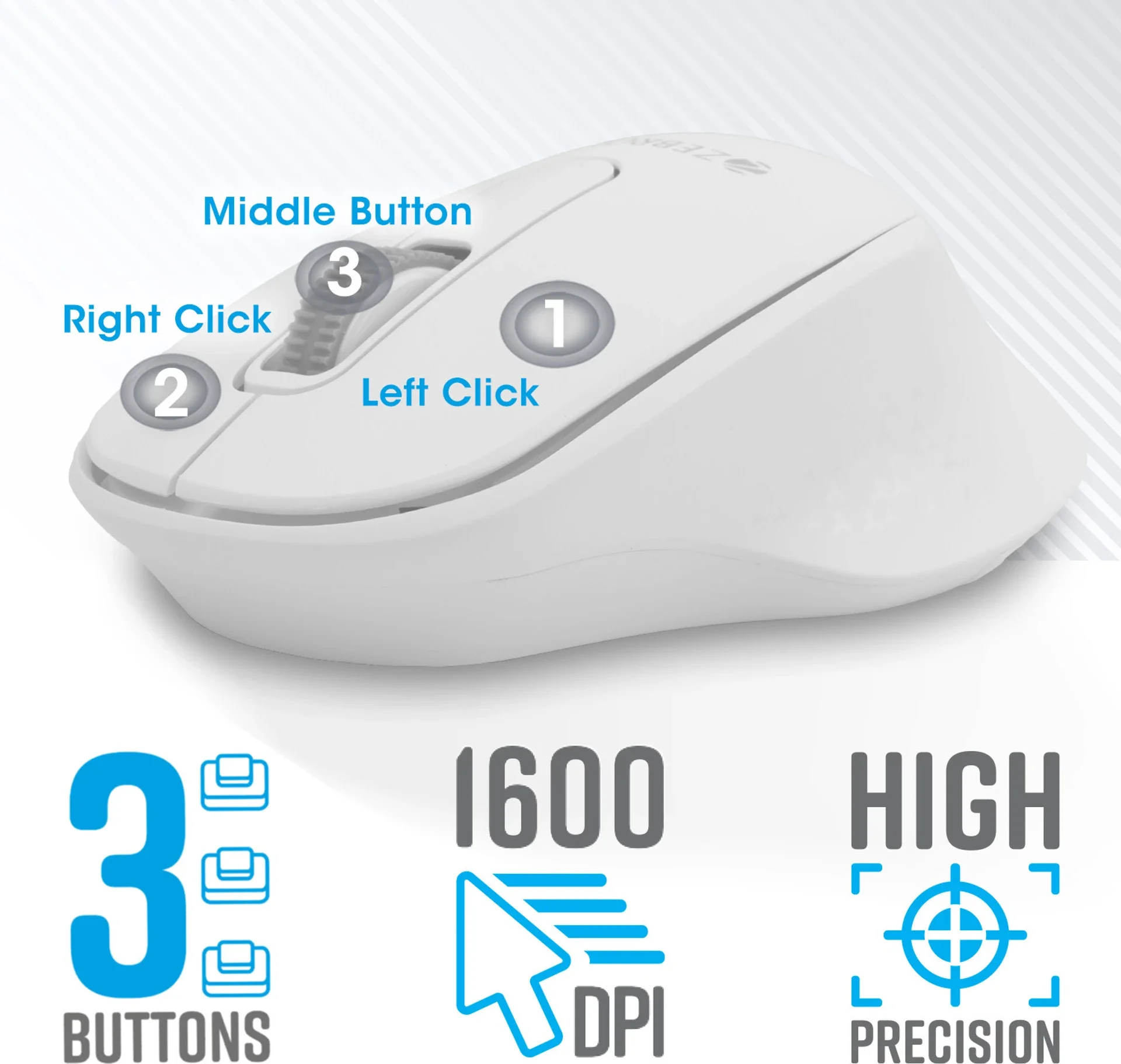 The mouse is equipped with a 1600 DPI sensor that delivers accurate and smooth cursor movement. It works well for daily computing tasks and provides reliable control across different surfaces.