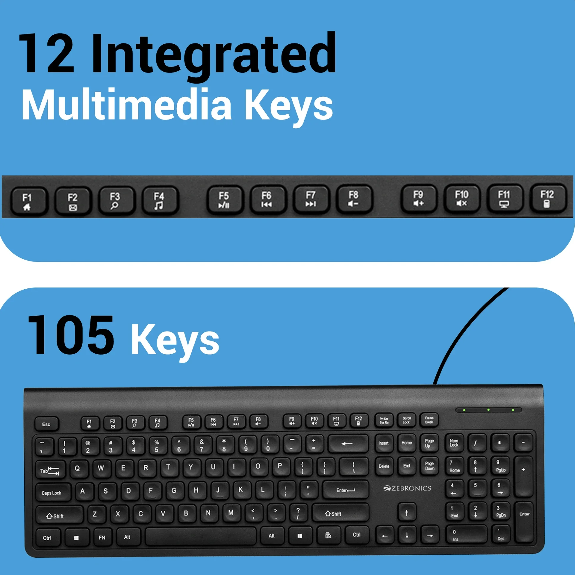 Built with a focus on durability and user comfort, this keyboard offers a stable wired connection and a smooth typing experience. It includes useful features like multimedia shortcut keys and a dedicated rupee symbol key, enhancing productivity for daily tasks. Its plug-and-play functionality ensures quick setup, making it a convenient option for users of all levels.