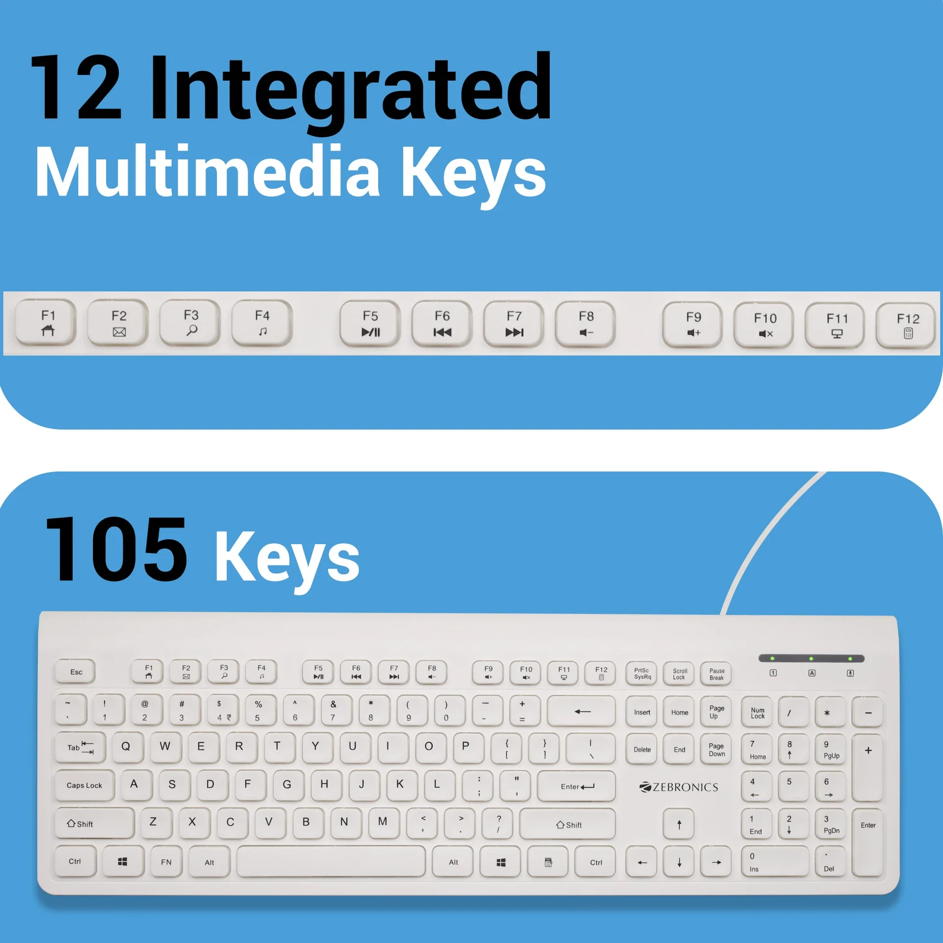 The Zebronics K51 (ZEB-KKB2) Wired USB Standard Multi-Device Keyboard in white is designed for users who want a dependable, stylish, and functional keyboard for everyday computing. Its full-size layout ensures that all essential keys are within easy reach, making it perfect for typing, office work, data entry, and general computer use. The clean white finish not only adds a modern touch but also blends effortlessly into both home and office environments.