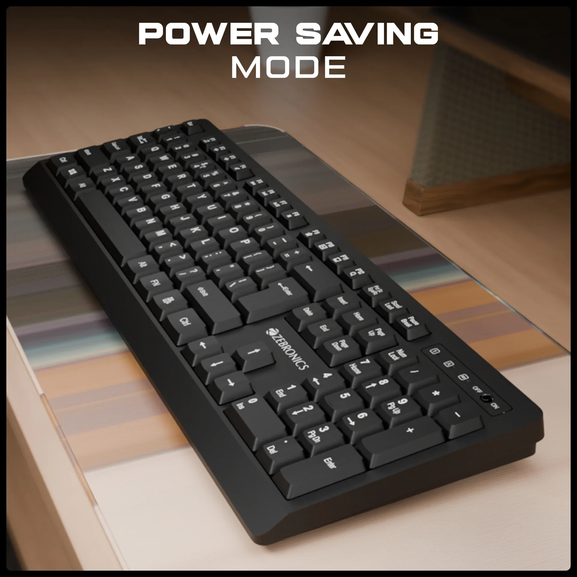 Designed with energy efficiency in mind, the keyboard includes an on/off switch and power-saving features that help extend battery life. It automatically conserves energy during idle periods, making it suitable for prolonged use without frequent battery replacements.
